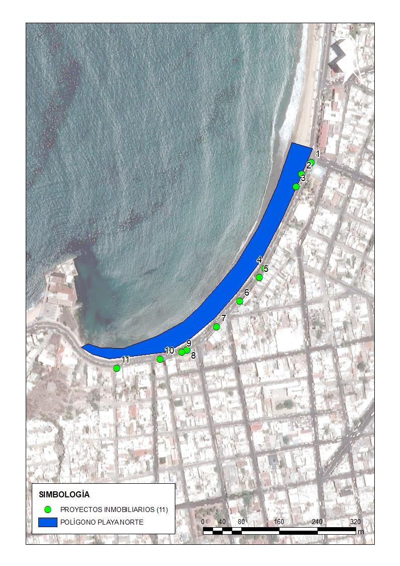 Figura 3. Ubicación de Playa Norte y algunos de los proyectos inmobiliarios (2023).