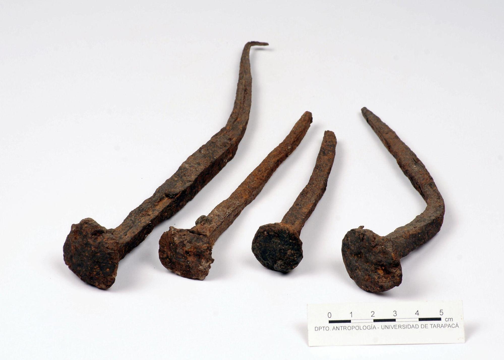 Figura 7. Piezas confeccionadas en hierro, halladas en el cementerio PLM-4. Tumba 136.
