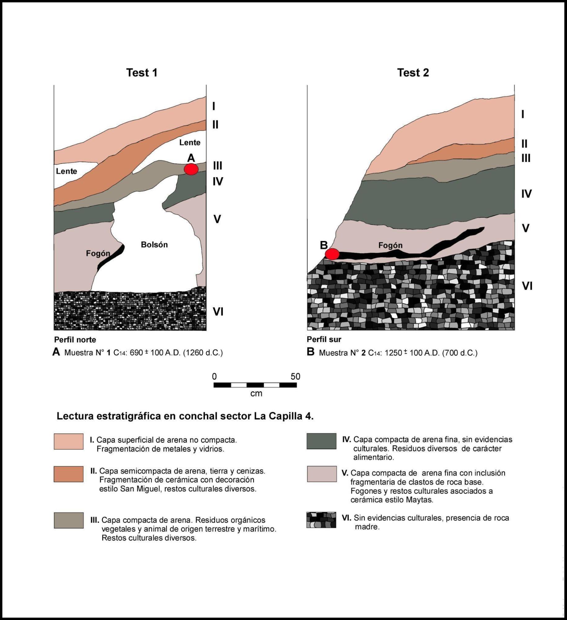 Figura 9. Depósito, conchal. La Capilla 4, perfil estratigráfico.